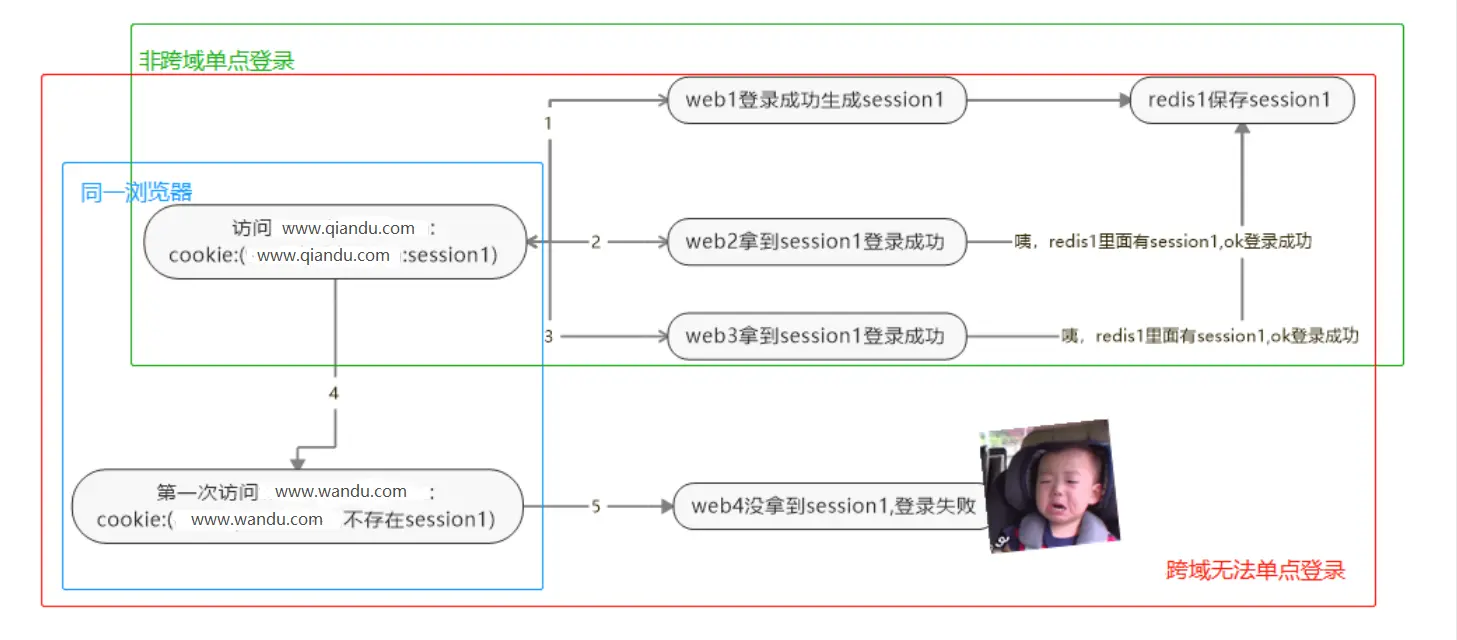 你要进一个门,通过用户名密码拿到了这个门的钥匙(session),之后你要进另一个门,这个时候不需要去输第二个门的用户名密码拿钥匙,你直接从书包(cookie)里面拿出第一个门的钥匙去第一个门以这个钥匙为凭证拿到一张证明(token),证明你进过第一个门所以也有资格进第二个门,拿到证明后去第二个门出示这张有效的证明就可以拿到第二个门的钥匙进入。
