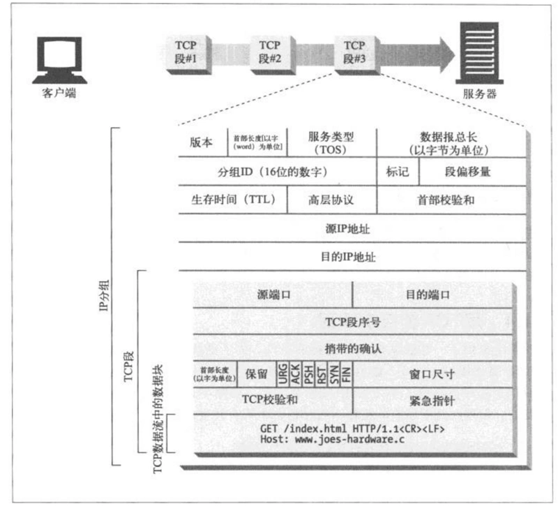 http协议其实就是TCP链接和一些使用链接得规则。 TCP 提供了可靠得比特传输管道 ip分组承载了tcp片段, 每个ip分组都包括: