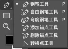 钢笔工具是PS比较重要的工具,快捷键为P,鼠标左键长按弹出菜单,里面是一些配套的钢笔工具,一般来说都用第一个,其他的可以配合快捷键ctrl或者ALT来使用。