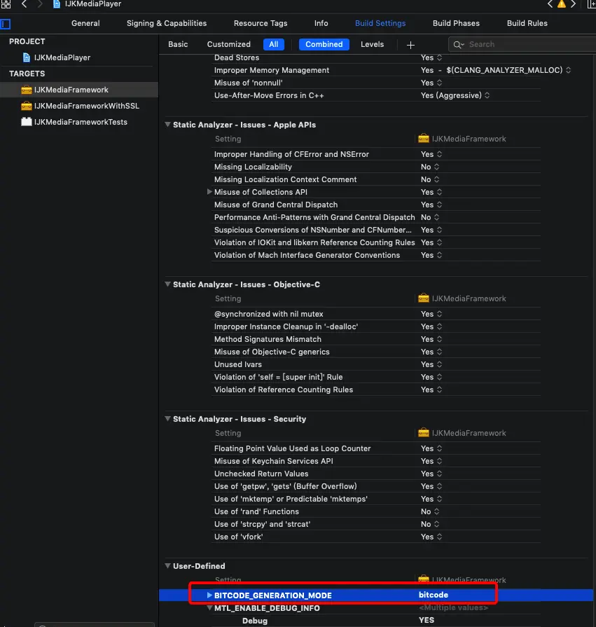 BITCODE_GENERATION_MODE=bitcode,然后进行编译生成framework