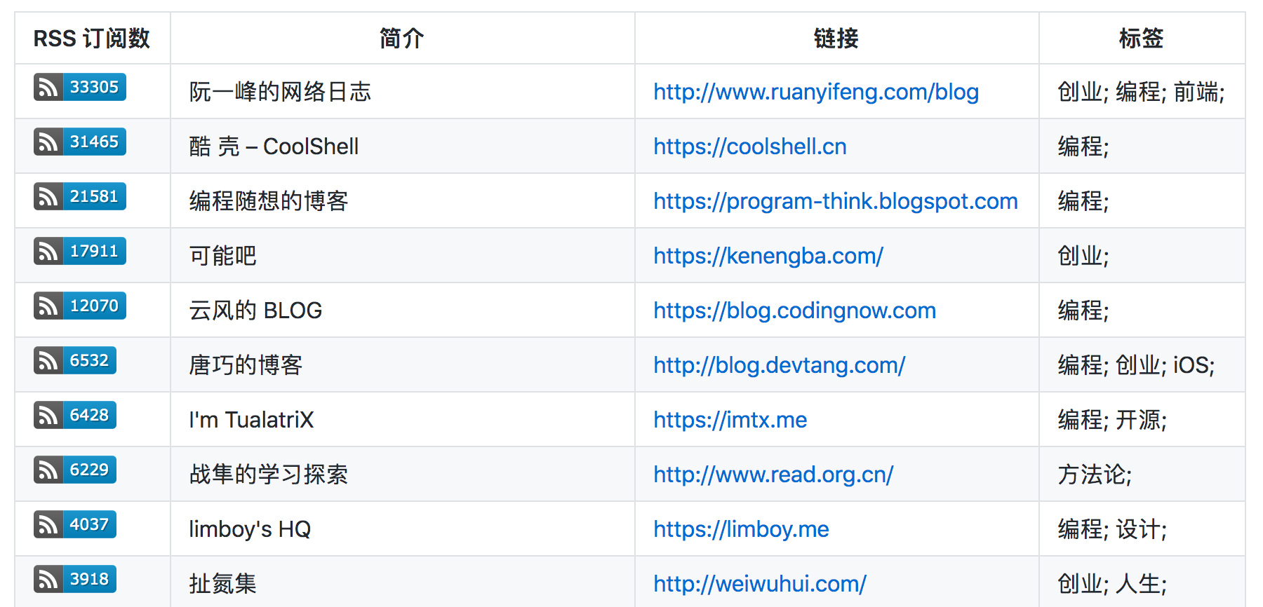 中文独立博客列表