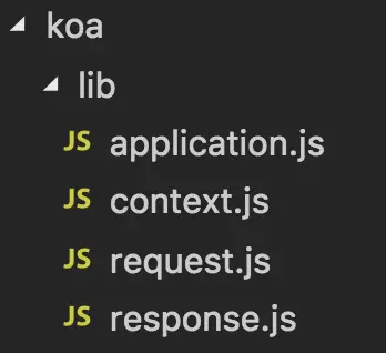 上图是koa2的源码目录结构的lib文件夹,lib文件夹下放着四个koa2的核心文件:application.js、context.js、request.js、response.js。