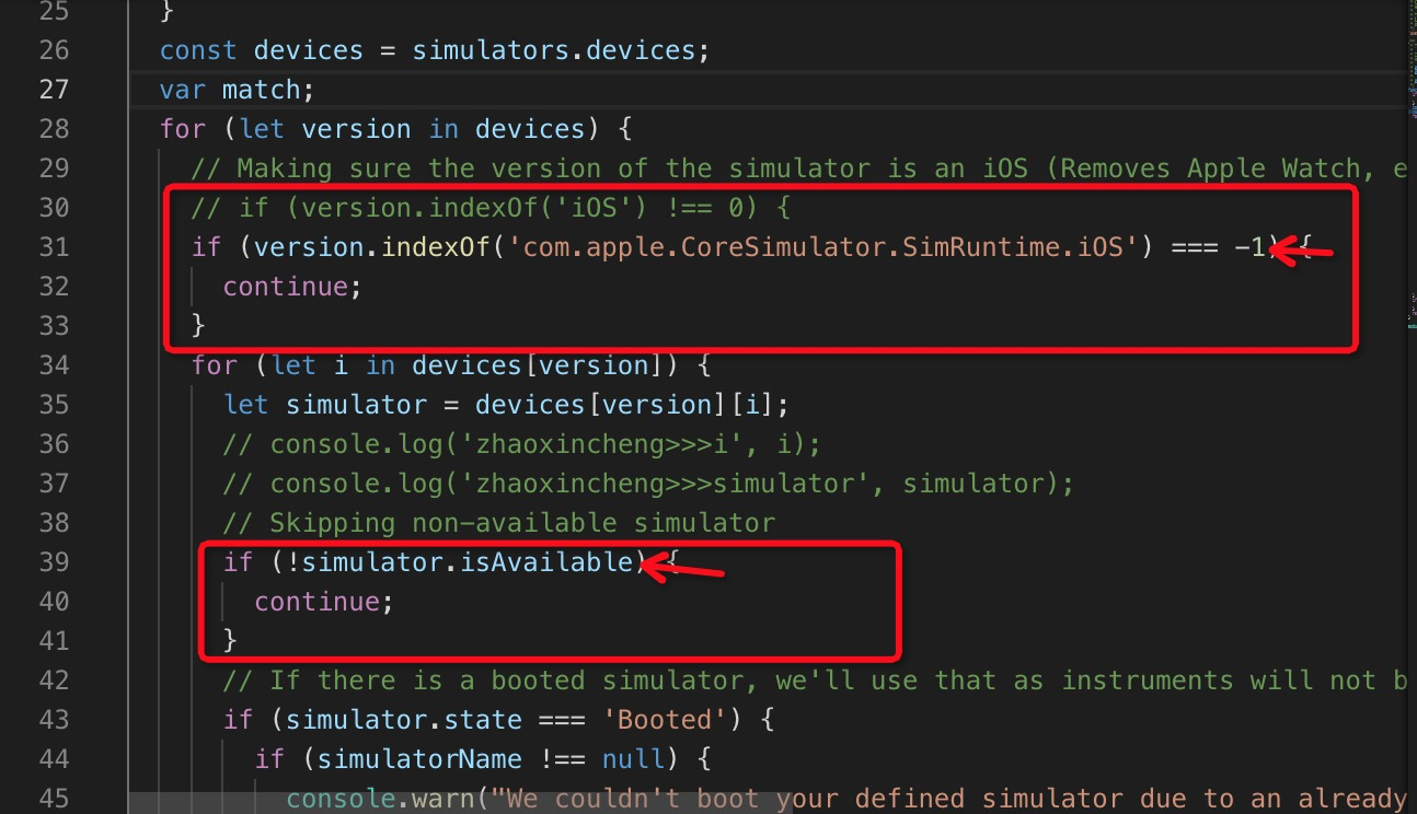 解决方法:还是修改findMatchingSimulator.js文件