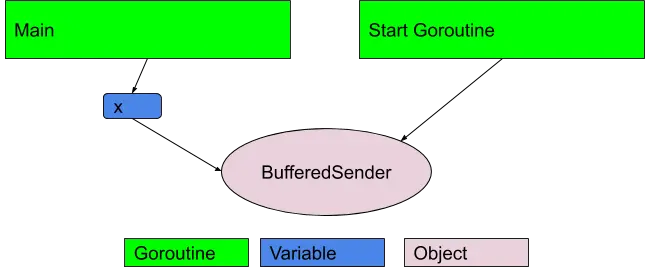 最开始main gorotinues是指向x,但当我们退出Process的时候BufferedSender仍然在运行,因为Start所启动的goruntinues没有停止。