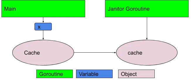 当我们有一个后台运行的goroutines通过其内部的构造函数创建一个对象以后,我们希望这个对象即使在goroutines没有被及时关闭以后,还能及时被垃圾回收。这是不可能的因为后台运行goroutines会一直运行并且会指向这个对象上。