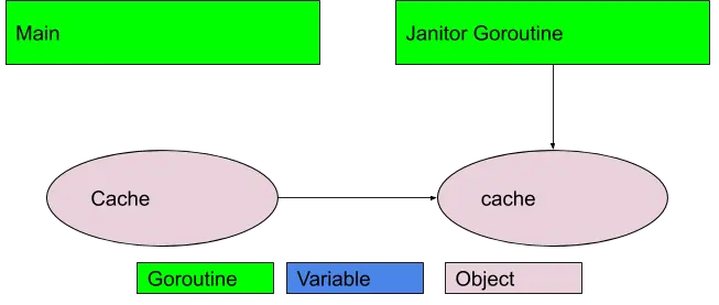 非常重要的区别的是这里的Cache是可以被垃圾回收的,即使cache对象并不能被回收。我们将GC行为器SetFinalizer设置在cache上。stopJanitor函数会通知后台运行的goruntines停止运行。