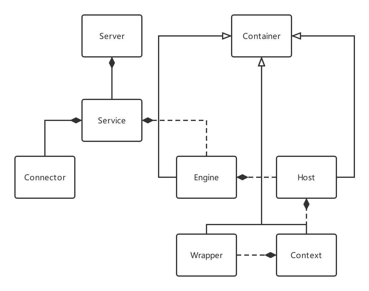 - 首先我们来看在Tomcat中对上面四种容器的继承结构类图: