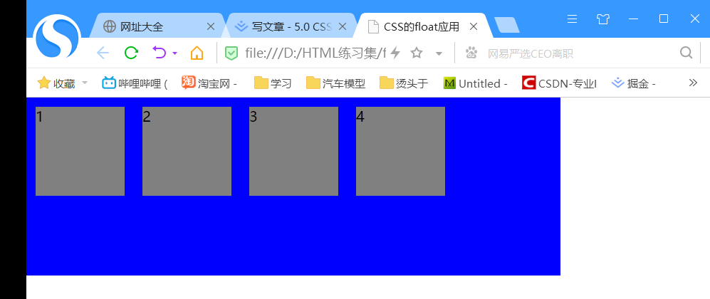 - float : left 左浮动