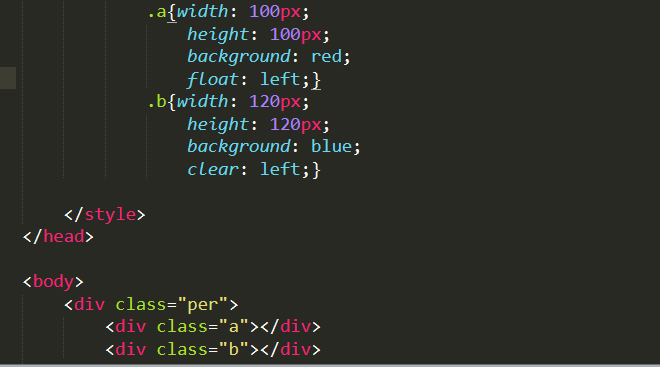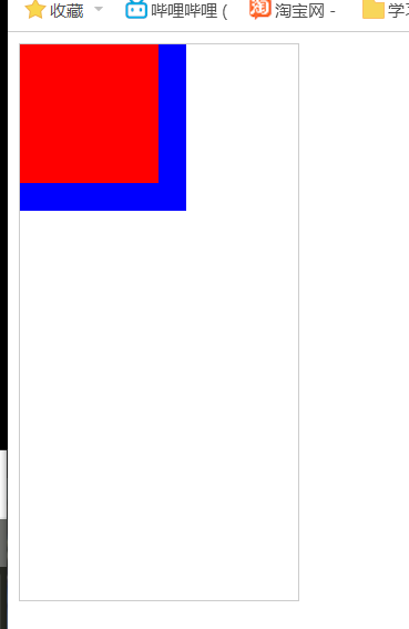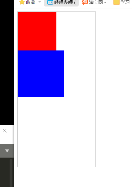 当在蓝色块的盒子中加入clear:left后,红色色块失去浮动效果,只能按顺序排列