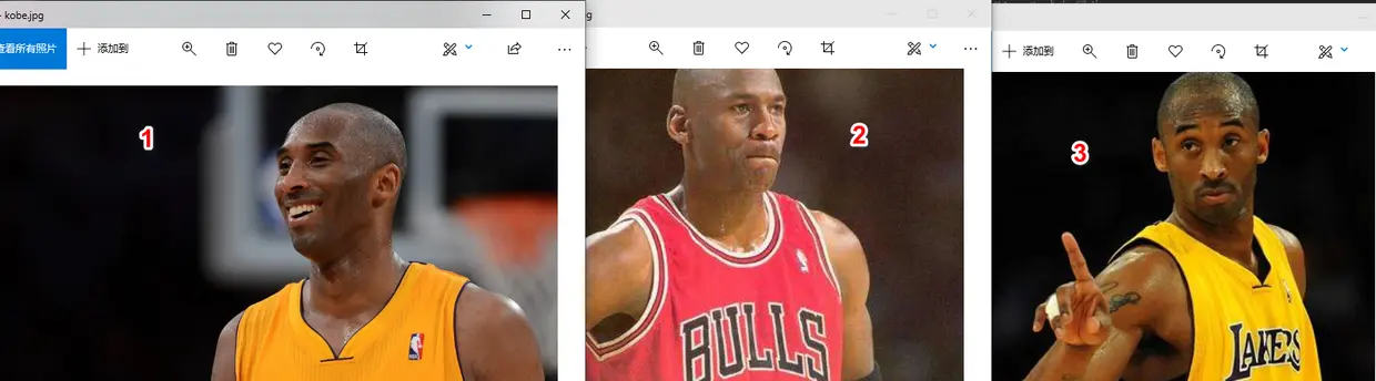 本次图片前面两张没有变化,第三张换成了科比和乔丹的合影,最终运行之后结果如下: