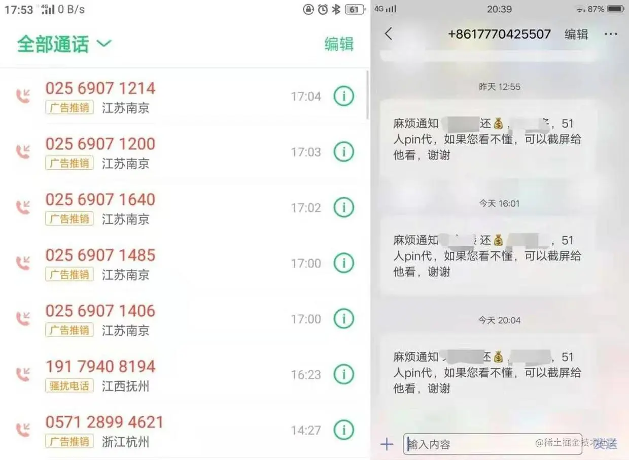 不仅是你自己的电话,你通讯录里面的朋友,家人和同事都会被电话催债。而且你还屏蔽不掉,只能关机!