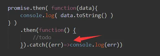 catch函数: 用于指定发生错误时的回调函数, 可以看成是 .then( null, reject() );当执行多个then操作时,建议用catch进行错误处理, 不用每个then函数都写一个reject的回调函数