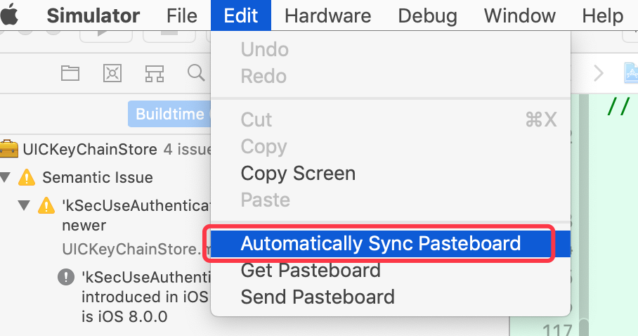 然后继续搜索问题,其中有信息提到Xcode 11中“ 修复了如果启用了自动粘贴板同步,则可能导致模拟器在其他应用程序中与剪贴板相关的操作后崩溃或无响应的问题”。