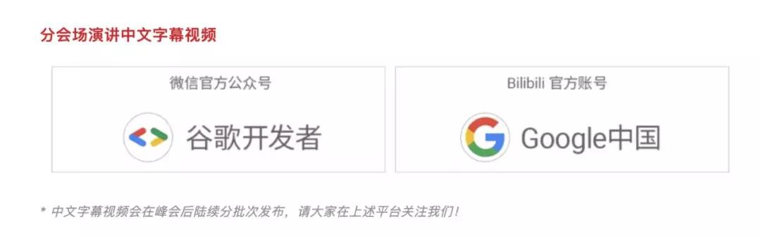 请您继续关注 “谷歌开发者” 微信公众号近期推文以及 “Google中国” Bilibili 官方账号,我们将会持续更新今年 Android Dev Summit 分会场演讲的中文字幕视频,敬请关注!