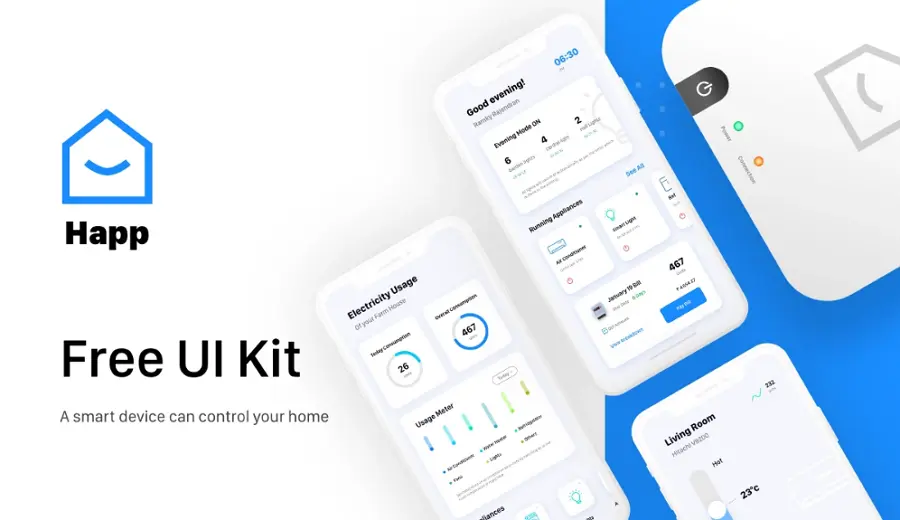 Happ UI kit包含网页、APP、遥控器等多个设备的模板,仪表盘、图表、设备控制、计时器等各种UI组件。如果你想要设计一款智能家居APP,那么这个UI kit 你一定不能错过。