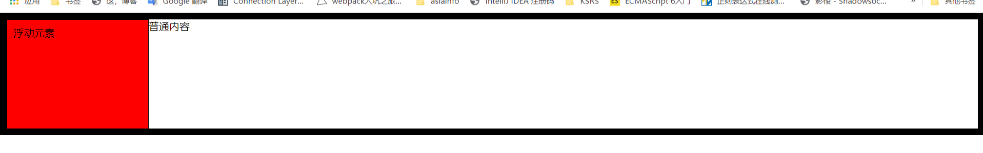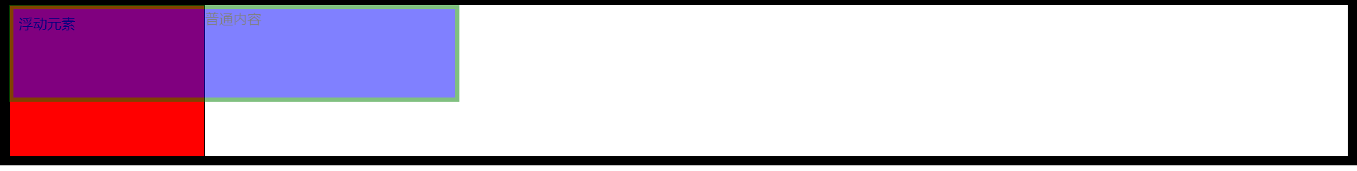 普通内容与浮动内容重合了,同样给普通元素创建BFC