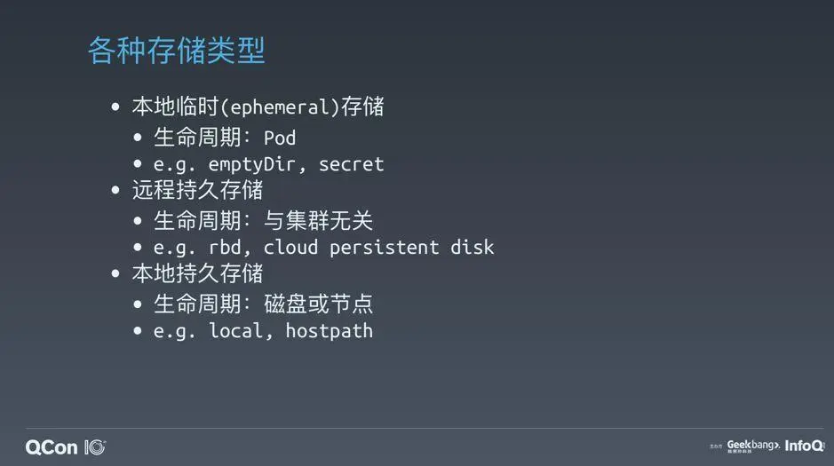接下来是存储的问题。我们不妨看看 Kubernetes 为我们提供了哪些存储方案: