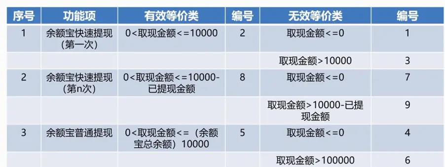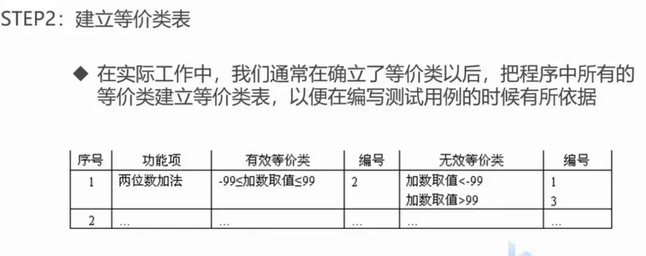 等价类划分流程:初步确立等价类(每一个等价类规定一个ID编号)-->细化等价类划分-->建立等价类表-->确定测试用例