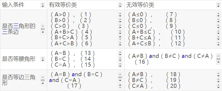 - 不但要考虑有效等价类,还要考虑无效等价类