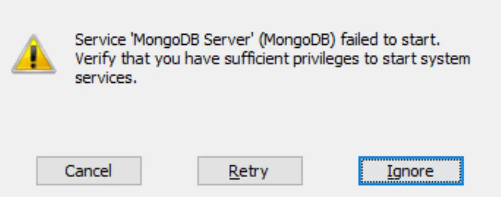 安装 mongo DB 时显示 “service MongoDB failed to start,verify that you have sufficient privileges to start system services”