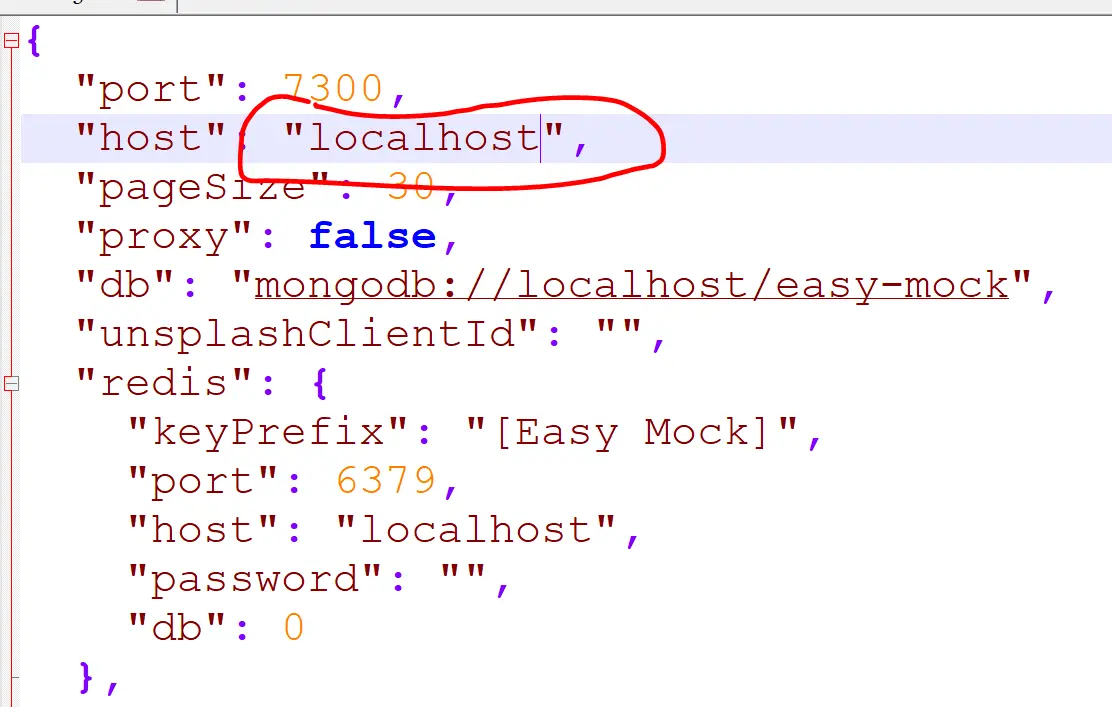 2.更改 easy-mock\config 文件夹下的配置文件 default.json 将 host 改为 “localhost”