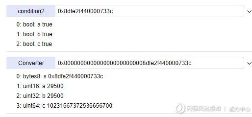1、 转换类型为 byte8 需要截断 tx.origin 为 8 个字节长度。这里测试账户地址0xca35b7d915458ef540ade6068dfe2f44e8fa733c。