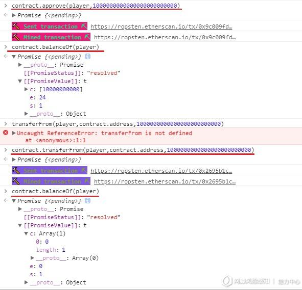 1. 在 console 窗口中,contract.approve(player,1000000000000000000000000),增加可以允许转移 token