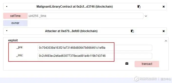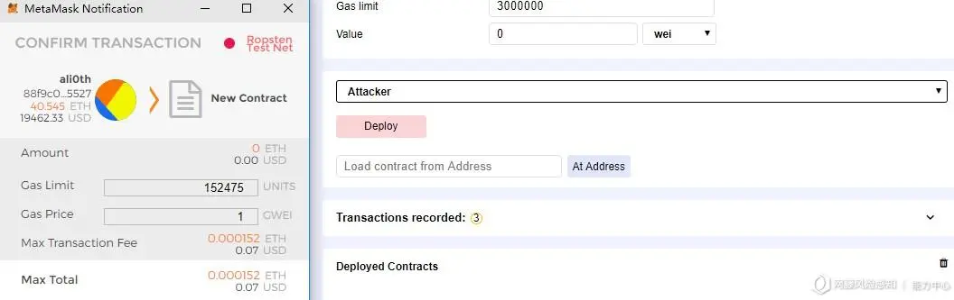 3 部署 Attacker 和 MalignantLibraryContract 合约。