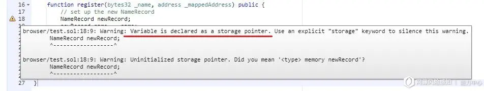 2 使用上面这种隐式声明的写法部署时不会报错,只有 warning 信息,可以部署成功。(声明为 storage 会报错,正确的方法应该是声明为 memory)