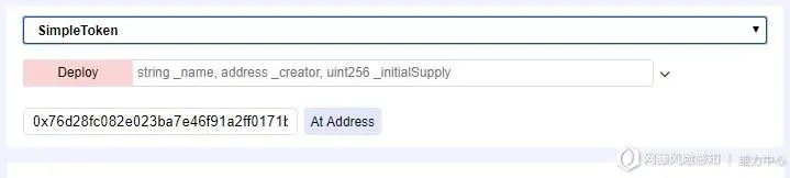 4 在 remix 贴上题目代码,在部署处,合约选择 SimpleToken, 使用 At address 指定 lost contract 地址