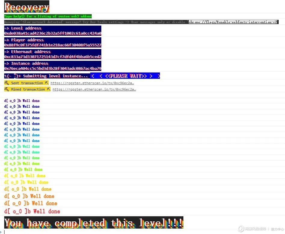 不知不觉, Ethernaut Writeup 已经做到 part 4 了。其实现在市面上也有不少智能合约相关的 CTF,不过漏洞原理大同小异, Ethernaut 相对来说比较权威,难度也较大,随着我们 writeup 的更新,官方也在更新着题目。目前已有的题目的 writeup 是已经全部更新完毕了。从一开始做的时候还有别人的解题过程可以参考,到后来的没得参考,题目还越来越难,这对我来说是一种磨练,同时也对 solidity 研究越来越深入。