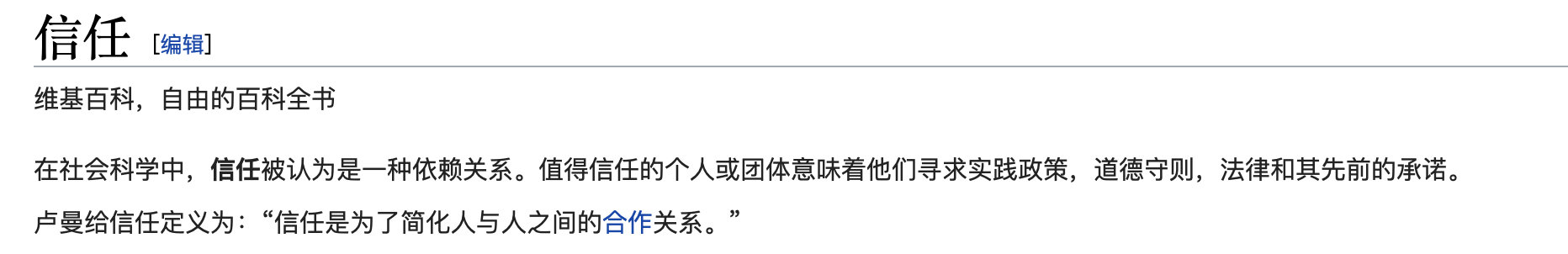 好了,这里又出现了一个新的概念,去中心化?这个名词只要一提到区块链就一定会被提到,所以你一定想知道去中心化到底是什么。不急,在谈去中心化之前,我们先谈一下另一个词——信任。