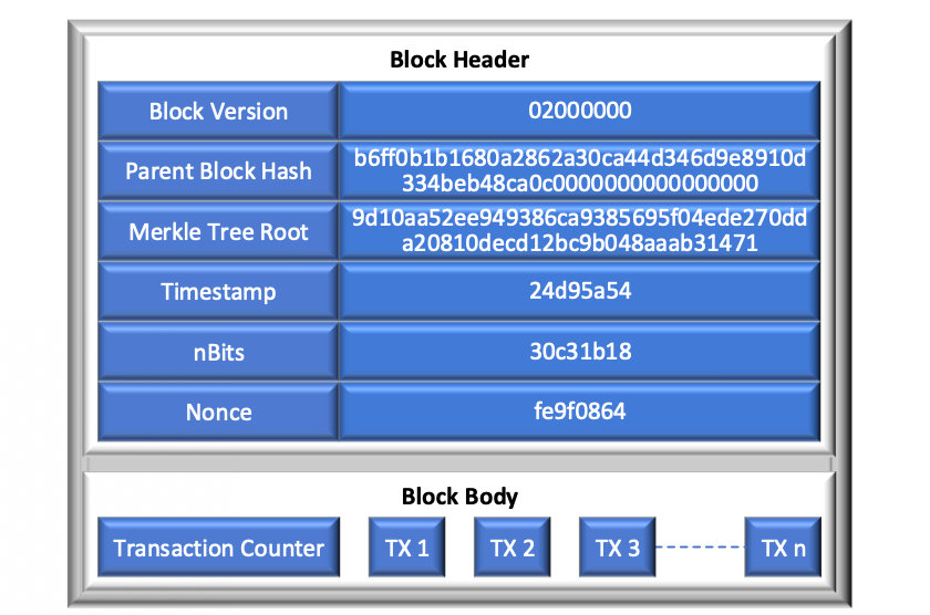 上图是一个**区块(Block)**示意图,每个区块包含两个部分: