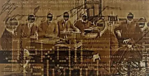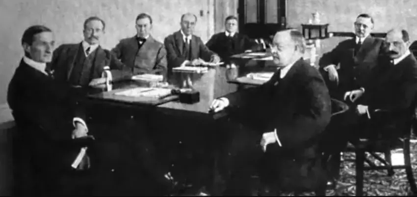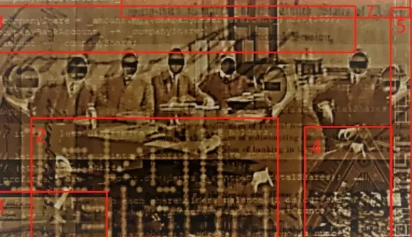 这张图片最显眼的就是8个“无脸男”了,照片复原一下是下图这样,这是1917年时美联储委员会 (Federal Reserve Board)的8个大佬。