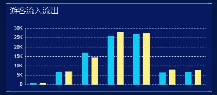 再如旅客流量显示,一段时期内流入流出的客流量,可以使用条形柱状图