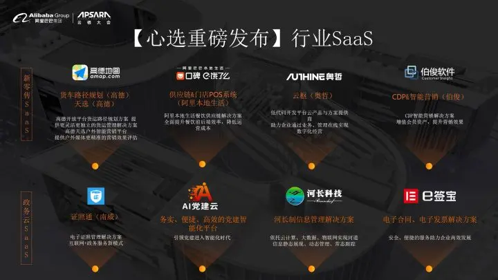 这八款新的SaaS包含说我们和高德一起推出的货车动态路径规划以及和高德打造的围绕商圈里面的客群、客流的分析产品。那同时我们会和口碑一起合作,推出能够去服务餐饮本地化门店的收银,以及供应链管理系统。最后就是那个奥哲和伯俊这两家,我们会和奥哲一起推出面向中大型企业的本地化部署BPM平台。