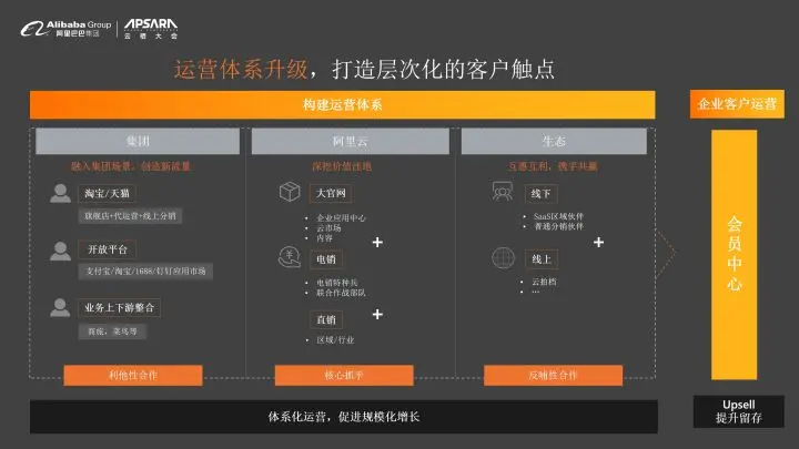 第一,今天我们在做我们的业务,不仅仅是阿里云在做这个业务。今年是整体大升级,我们做的是阿里云智能,它是一个集团的业务。所以我们会和集团产生非常深度的联动。例如说,我们淘宝、天猫里面会有阿里云相关的一些软件,阿里云的一些官方旗舰店。同时在整个集团,各大开放平台,我们会去做商品服务商的打通。