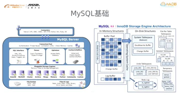 MySQL Server引擎的好处在于大家可以基于此实现自己的数据库。目前,MySQL已经发布了8.0版本,可以看到这么多年MySQL官方其实一直在进步。MySQL在并行和提高速度方面做了很多工作。在引擎方面,最开始MySQL使用的是MyISAM,现在默认是InnoDB,这是因为MyISAM的并行处理能力不够好,而InnoDB实现了行级锁,还支持了MVCC,增加了并行读写的能力。在引擎层面,从MyISAM过渡到InnoDB是一个巨大的进步。