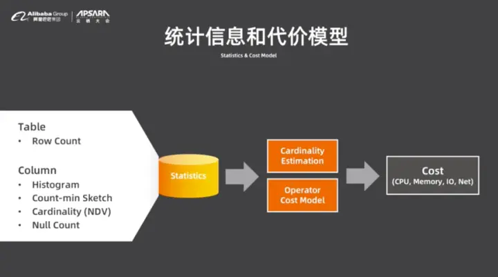 DRDS查询优化器的优化过程是基于代价的,而代价最初计算来自于统计信息,这些统计信息将会计算代价并带入算子Cost Model中进而计算执行计划的总体代价。