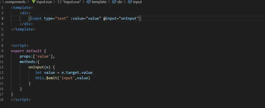 要注意的地方就是,子组件中监听onInput时,用的是this.$emit触发父级自定义的input事件,实现组件的传值