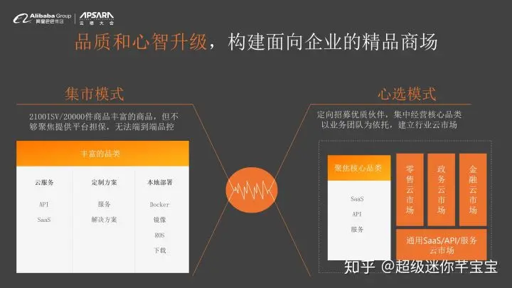 有幸与和各位伙伴携手,大家可以在云市场看到非常丰富的服务商和商品,大家自由选择两千多个服务商提供的两万多件商品。好处是能够满足平台里面非常长尾的需求,结合过往运营经验,我们也发现一些可以改进的地方,例如我们对于商品的聚焦不够。