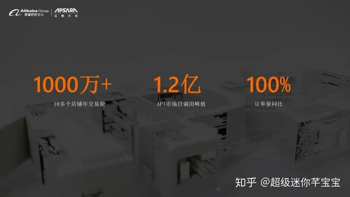 那我们今年差不多已经有十多个店铺,它的年交易是过千万了。API市场里面的,日调用峰值是过了1.2个亿。最后就是平台里面我们整体的订单,年化还是百分百增长的。这一系列整个订单的背后,源于我们有一个体系化的运营。