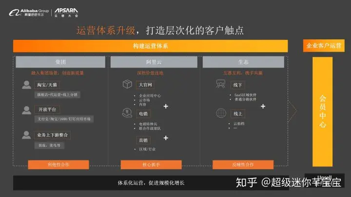第一,今天我们在做我们的业务,不仅仅是阿里云在做这个业务。今年是整体大升级,我们做的是阿里云智能,它是一个集团的业务。所以我们会和集团产生非常深度的联动。例如说,我们淘宝、天猫里面会有阿里云相关的一些软件,阿里云的一些官方旗舰店。同时在整个集团,各大开放平台,我们会去做商品服务商的打通。