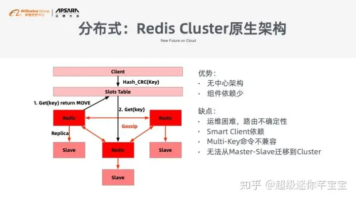 Redis原生的Cluster架构采用了Gossip协议实现路由表的同步,但这种架构在社区以及企业中并没有快速流行起来。虽然其有无中心架构、组件依赖少等优点,但也存在很多问题,如运维困难,路由存在不确定性,需要依赖Smart Client,并且不支持Multi-Key以及从主从模式迁移到集群模式,进而造成升级困难。