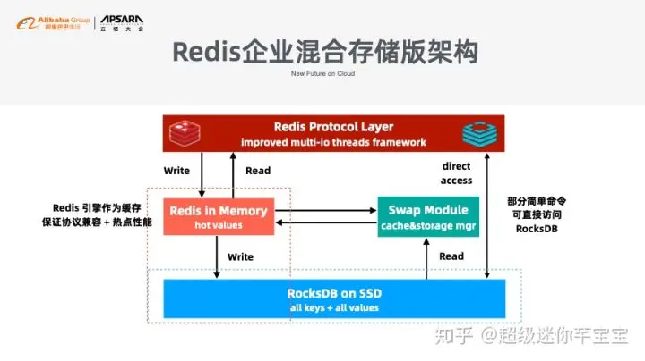 而Redis作为内存型的缓存服务也存在很多挑战,比如容量受限,成本较高以及持久化能力弱等。基于以上问题,阿里云提供了混合存储的Redis版本,其目的在于为用户提供持久化、可安全存储的Redis服务。其实现依赖于底层的RocksDB,通过不断同步冷热Key,使得内存处于可控范围之内。
