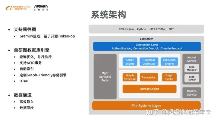 GDB脱胎于Tair Service中的TairGraph 子系统,后来其孵化出来,并放到阿里云上来专注地解决高度连接数据场景中的问题。基于Tair 10年的技术基础,GDB实现了高度优化的自研引擎,能够实现实时更新和秒级查询,并且完整地支持ACID事务,并通过多副本保障高可靠。此外,还做到了服务高可用,能够实现节点故障迅速转移;易运维,提供了开箱即用的能力;可视化,更利于分析数据的内在关系。