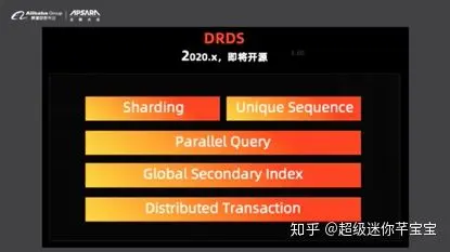 最新发布是让DRDS支持POLARDB,并且在2020年的某个时间,阿里云将会开源DRDS。DRDS完全由阿里自研,其中包含了Sharding、Unique Sequence、Parallel Query、Global Secondry Index以及Distributed Transaction。希望大家能够更加广泛地使用DRDS,如果有机会也贡献更多的代码,将DRDS做得更好。