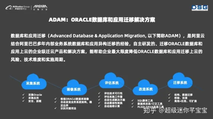 DSG和ADAM的核心能力结合起来就能够形成Oracle迁移智能全链路解决方案,并且在国内的很多客户企业中已经落地。这么多年来,DSG一直在深耕数据迁移方面的底层技术。而且DSG for ADAM深度集成了阿里云的技术,实现了数据迁移、数据比对等过程的可视化。此外,DSG for ADAM数据库迁移方案对于正常业务的干扰极小,并且可以在中间状态、云上云下环境中部署。为了打消客户对于数据库迁移的疑虑,DSG还提供了完善的数据回流功能。
