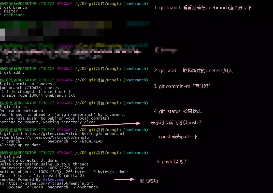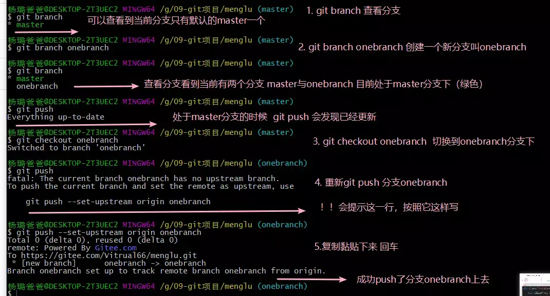 a)在小黑窗口新建新分支(会直接在码云上显示新分支)