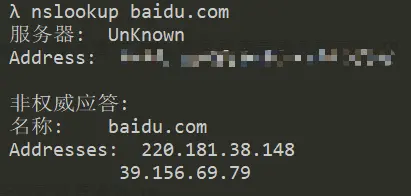 nslookup baidu.com